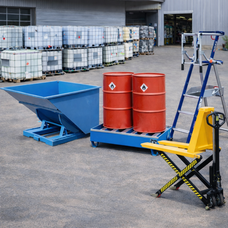 Notre catalogue comprend notamment des armoires de sécurité pour produits chimiques et batteries lithium-ion, des bacs de rétention pour le stockage de produits dangereux, des équipements de manutention, ainsi que des solutions d’accès en hauteur et d’aménagement des zones de travail.